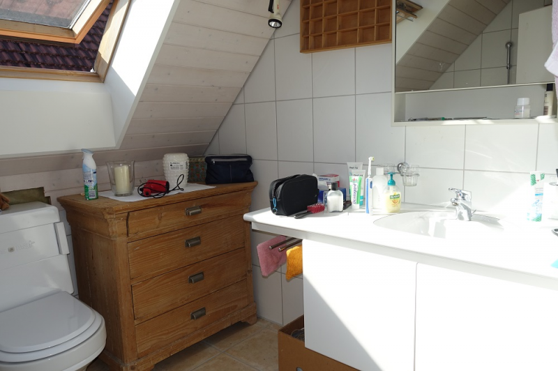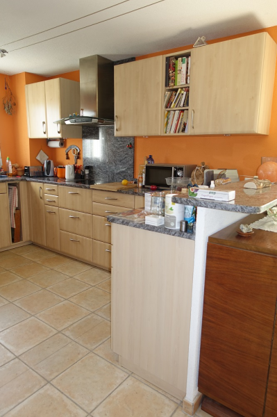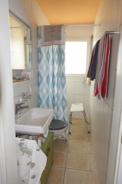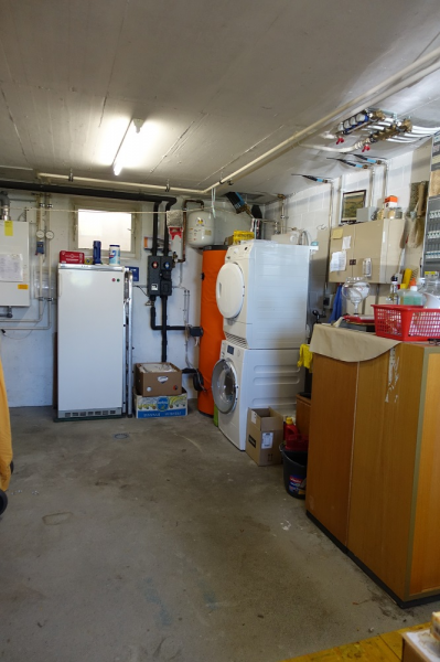 Der Eingangsbereich befindet sich im Untergeschoss. Rechterhand liegt ein beheiztes Zimmer mit Fenster, das verschieden genutzt werden kann. Ein Wein- und Vorratskeller sowie eine sehr grosse Waschküche sind auch im Parterre. Eine weite Wendeltreppe führt ins Erdgeschoss. Ein offener, grosser, lichtdurchfluteter Raum liegt vor Ihnen. Hier treffen sich Küche, Ess- und Wohnzimmer. Die offene, helle Holzküche mit einer Granitabdeckung, verfügt über die wichtigsten Geräte. Im Wohnbereich strahlt der Schwedenofen viel Gemütlichkeit aus. Ein Badezimmer mit begehbarer Dusche sowie ein weiteres Zimmer findet man auf dieser Etage. Die Wendeltreppe führt weiter ins Obergeschoss. Ein Elternschlafzimmer sowie ein Büro liegen Richtung Osten und ein weiteres, grosszügiges Zimmer befindet sich auf der Westseite. Auch ein Badezimmer mit Badewanne ist vorhanden.