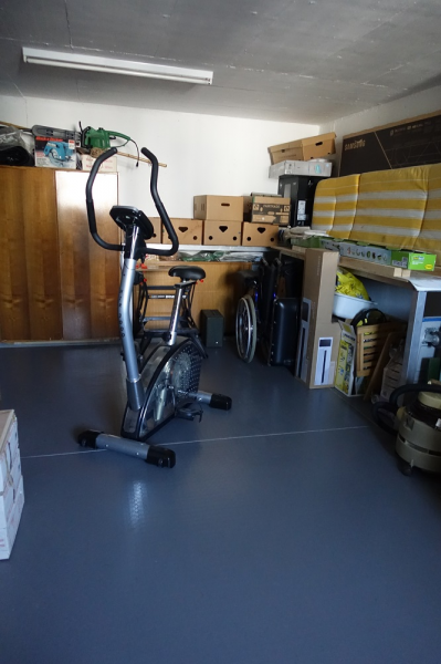 Durch eine Glastüre gelangt man in den Garten. Ein Sitzplatz liegt auf der Nord-, der andere auf der Westseite. Das Landwirtschaftsland ist die Fortsetzung vom Sitzplatz Richtung Westen. Viele Obstbäume und Sträucher befinden sich auf dem Land. Eine Garage und zwei Abstellplätze gehören auch zum Objekt.