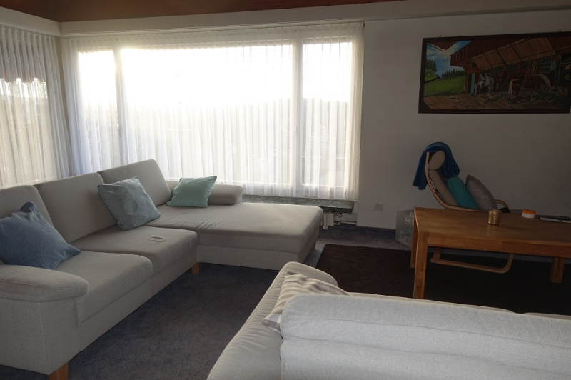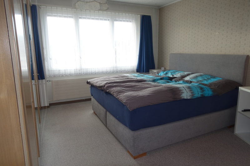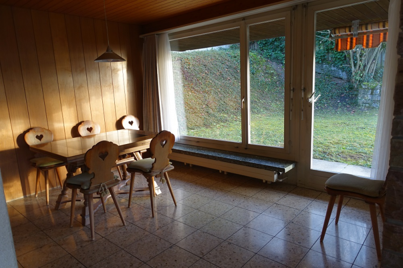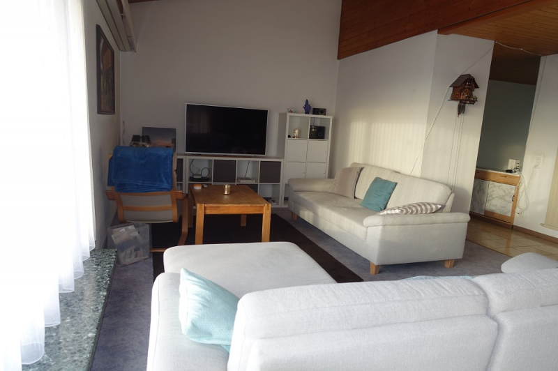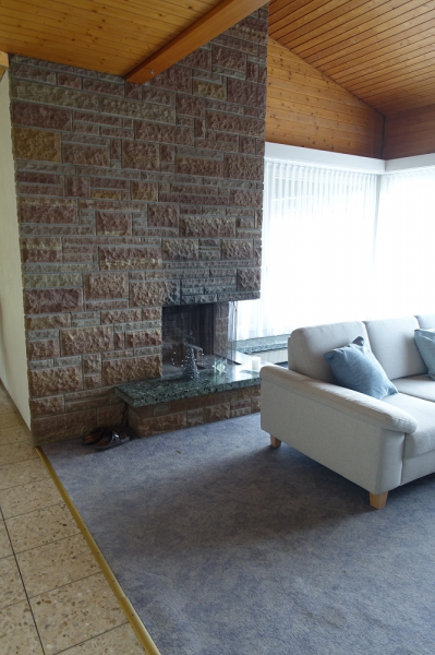Der Eingangsbereich befindet sich im Untergeschoss. Sie finden hier viel Platz, um ein schönes Entreé zu gestalten. Rechter Hand liegt ein geräumiges, beheiztes Zimmer mit grossem Fenster. Weiter findet man links die grosszügige Doppelgarage, die Waschküche sowie einen Vorratskeller. Rechter Hand ist der Heizungsraum. Nun steigen wir die offene Treppe hinauf ins Erdgeschoss. Der Wohnbereich überzeugt durch die grossen Fenster. So hat man den Weitblick über die Aare hinaus in Richtung Südwesten. Auch das Chemineé sowie die spezielle Form der Decke sind besonders. Die offene Küche zum Esszimmer verleiht eine gemütliche Note. Von Hier gelangt man in den Garten und zum gedeckten Sitzplatz. Auf der anderen Seite liegen die drei Schlafzimmer. Zwei davon sind von durchschnittlicher Grösse, das Elternschlafzimmer ist so grossflächig, dass man sogar eine „Ankleide“ integrieren könnte. Auch das Badezimmer mit einer grossen Dusche, Lavabo und Toilette liegt hier.